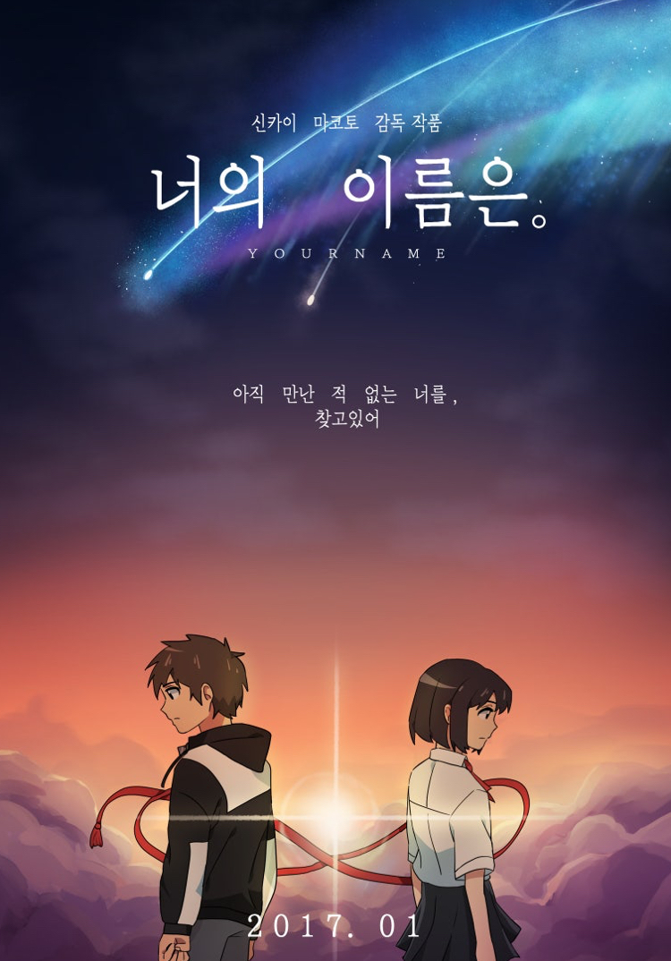 《너의 이름은 (君の名は, Your Name)》은 2016년 개봉한 일본 애니메이션 영화로, 신카이 마코토(新海誠) 감독이 연출을 맡았습니다.