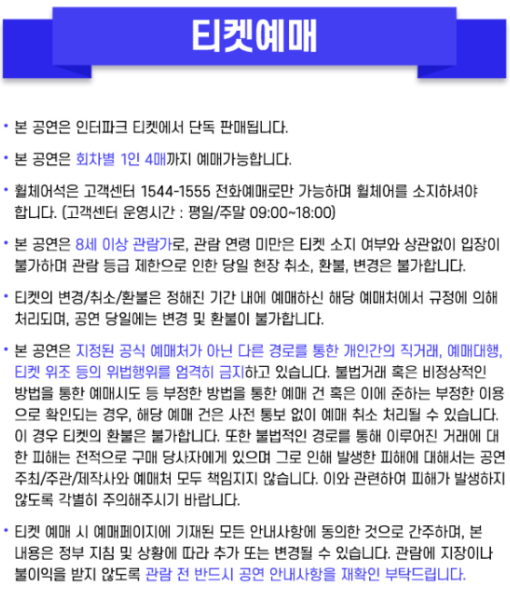빠른 예약 필요: 인기 있는 공연이기 때문에 예약 시작 시 매진될 가능성이 높습니다